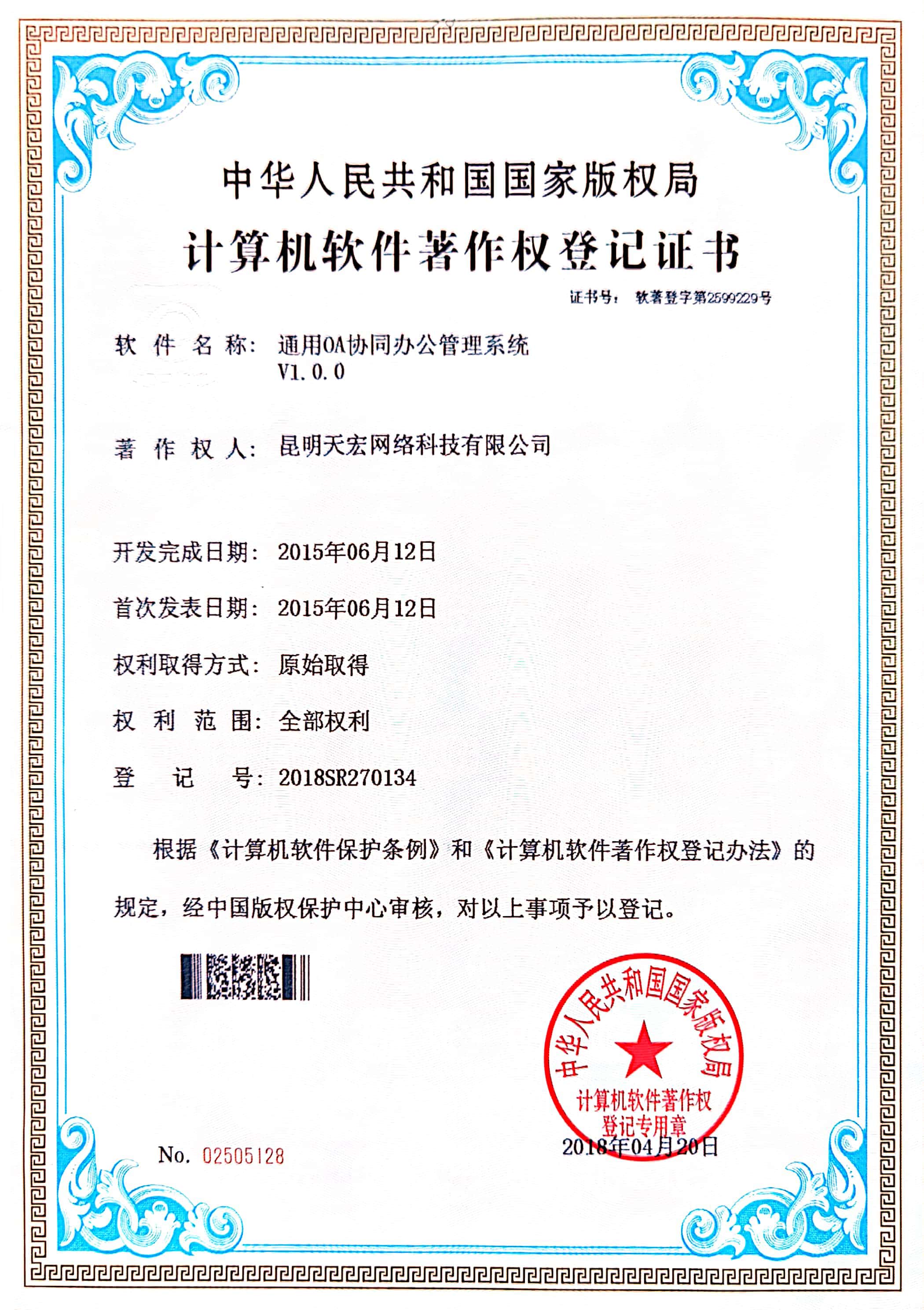 天宏網(wǎng)絡通過不斷的研發(fā)創(chuàng)新,現(xiàn)擁有50多項計算機軟著證書,包括多商家點餐系統(tǒng)、門店收銀管理系統(tǒng)、通用OA協(xié)同辦公管理系統(tǒng)、智慧商圈運營管理平臺、天宏健康智慧+系統(tǒng)、同城O2O管理系統(tǒng)等。